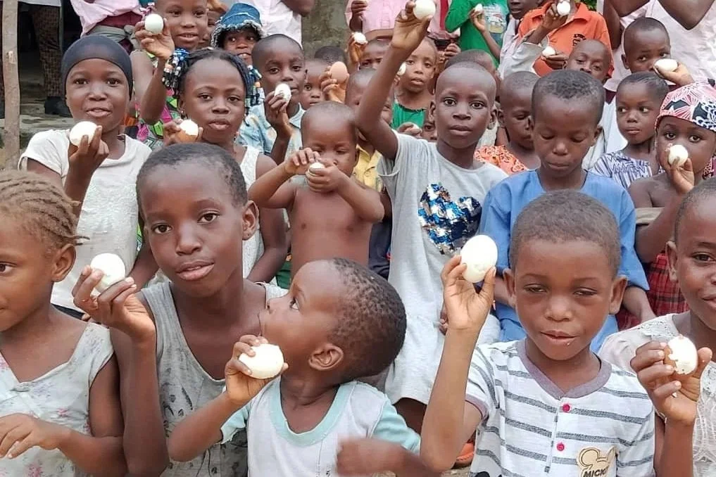 At the Umuahala Church of Christ—lovingly known as the Vitamin Church—about 60 children come together twice each week to gather in fellowship and teaching. During each visit, the children receive spiritual nourishment through the time they spend together in the church setting. In addition to this spiritual care, they are also blessed with a vitamin, an egg, milk, soya cake, or rice and beans. These provisions are given to support their well-being and to help them grow strong and healthy as they continue to come together regularly at the church.